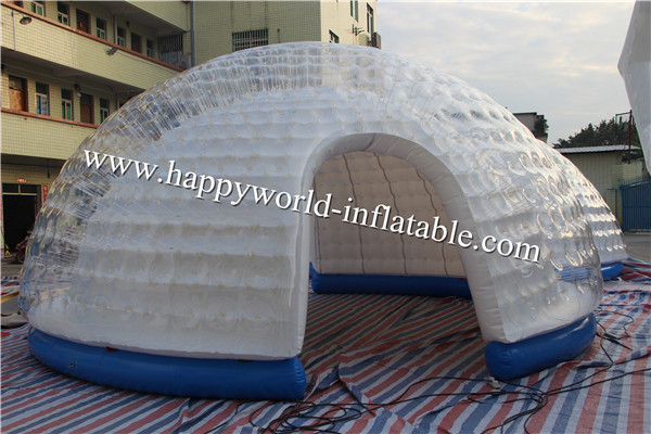 The material of inflatable tent is Nylon/PVC Tarpaulin/1.0 mm transparent PVC or TPU. They are all flame retardant and waterproof.